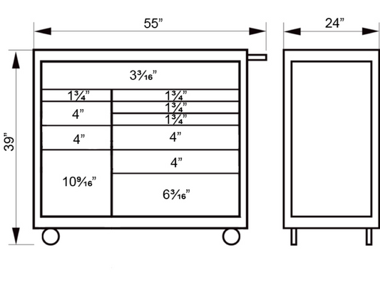 Williams #W55TC10 - 10B - 10BL - 10Y 55" Wide x 24" Deep 10-Drawer Tool Chest, Professional Series