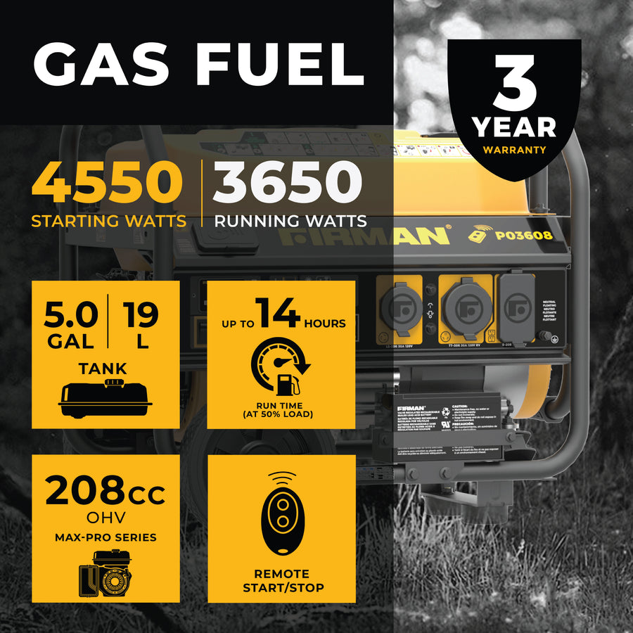 FIRMAN® Gas Portable Generator 4550W Remote Start 120V #P03608