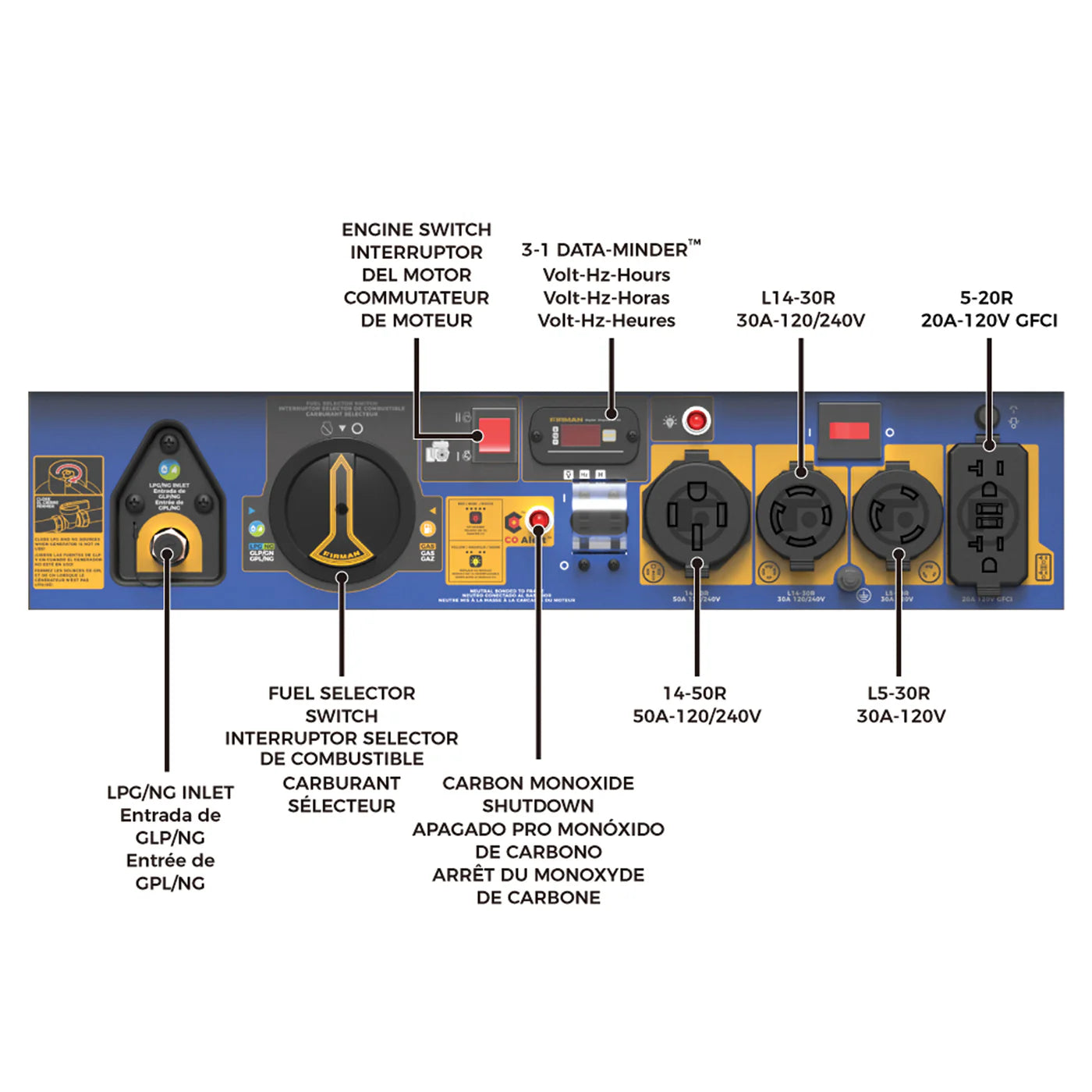 FIRMAN® Tri Fuel Portable Generator 11400W Electric Start 120V/240V with CO Alert #T09275