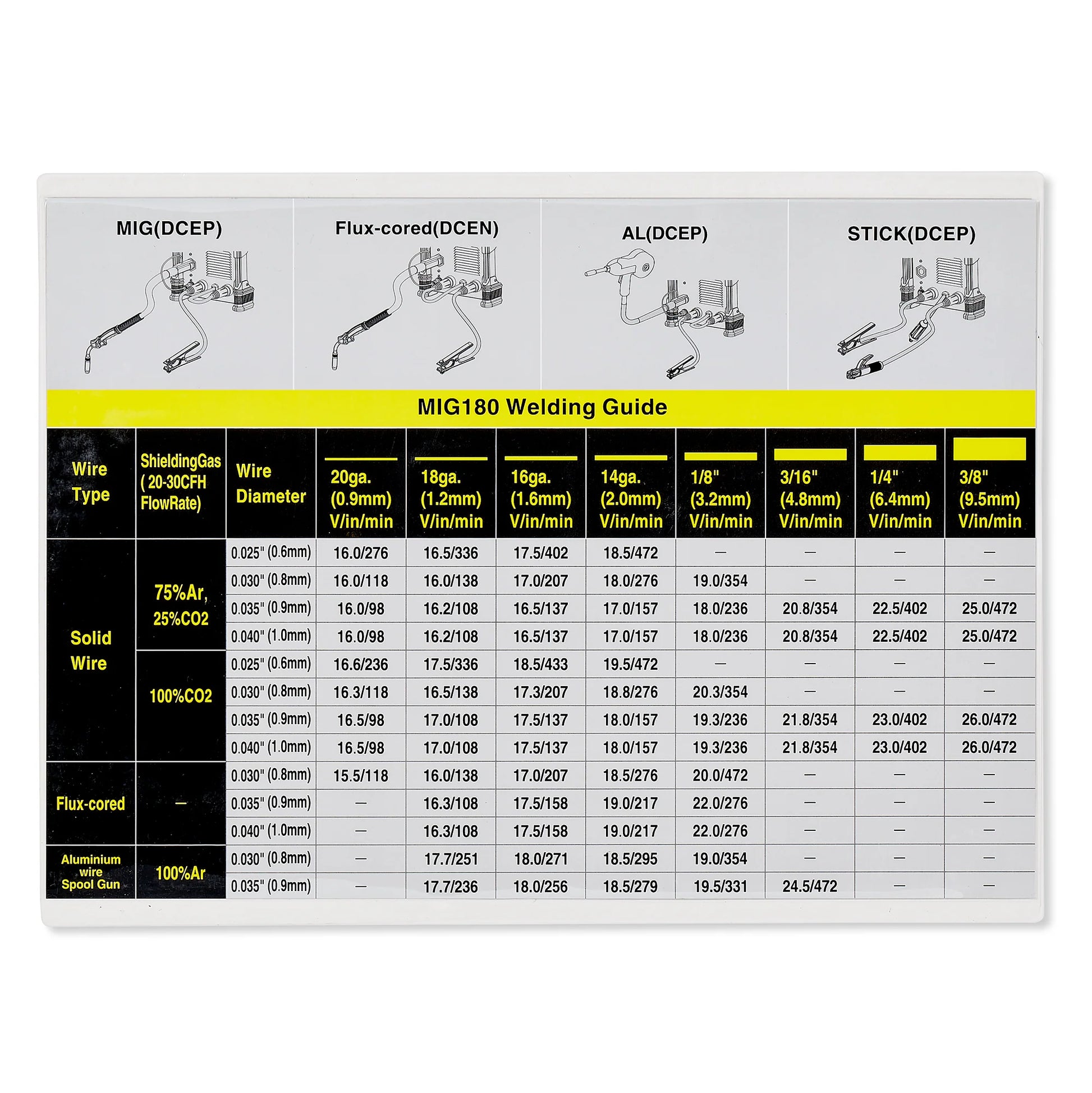 The MIG180 mig welder includes upgraded Tweco 100 Style torch and American style connection.